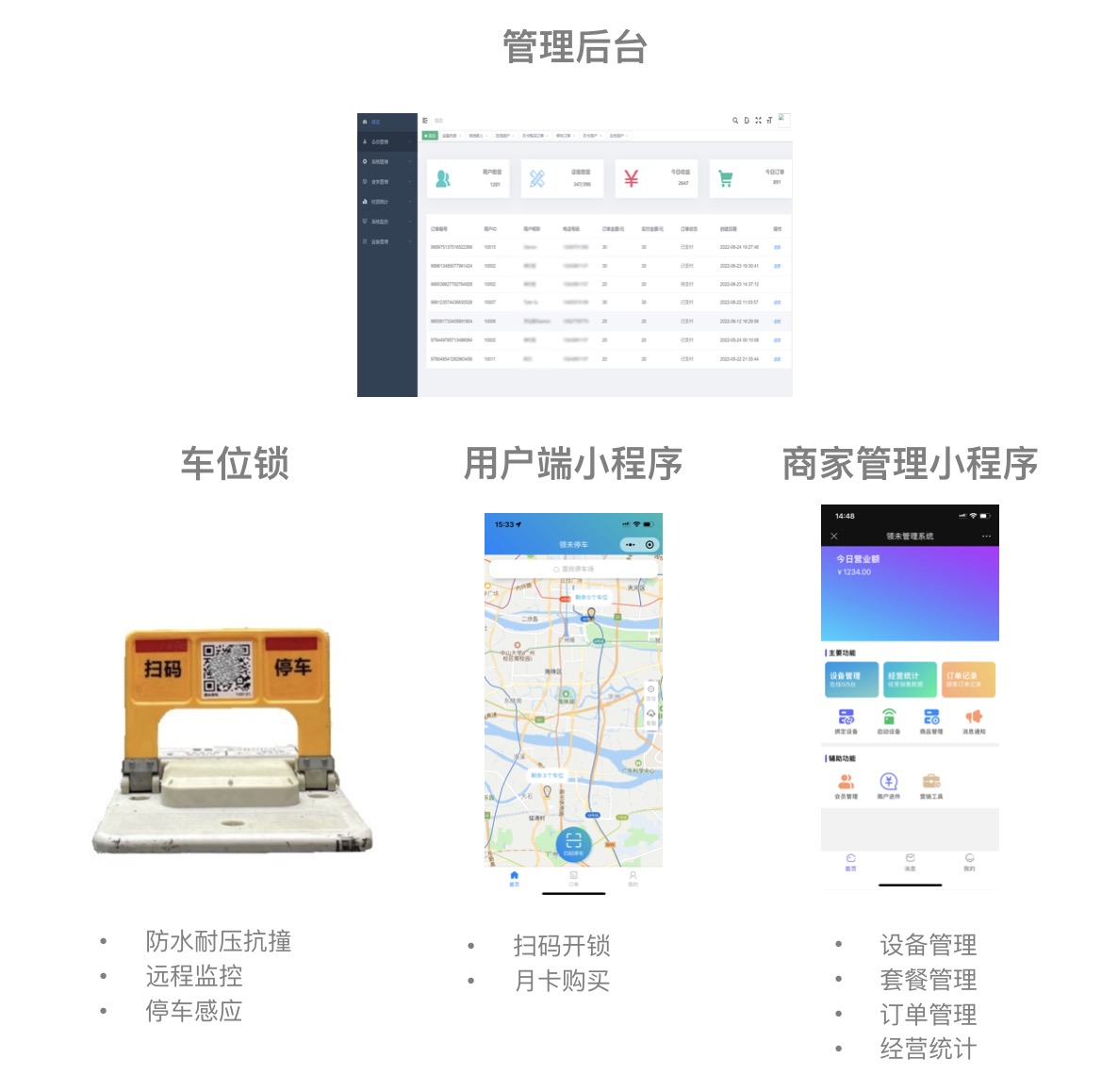 聚合:iot物联系统+智慧停车系统+支付系统(免密支付/分账)